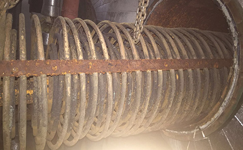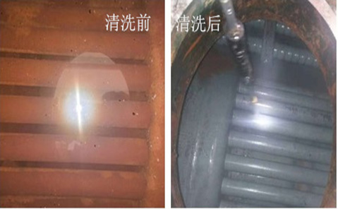 3、 長期不清洗的換熱設(shè)備,換熱管內(nèi)水垢會(huì)日益加厚,對(duì)管壁造成腐蝕,清洗后可能出現(xiàn)漏水現(xiàn)象。